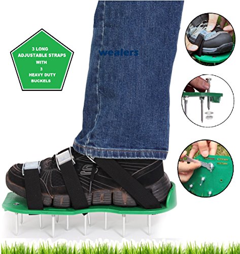 - Product Name: Wealers Green Spiked Lawn Aerator Foot Shoe Set, with Heavy Duty Metal Buckles and 3 Straps